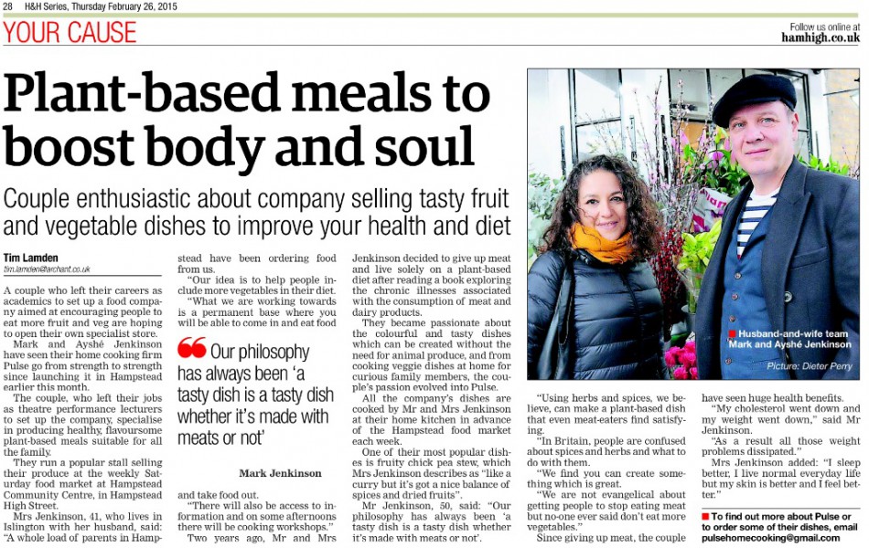 This is where ‘we’ come in. We are Ayshé and Mark— inseparable since 1999. Our backgrounds in theatre and education brought us here. We have been plantbased since the start of 2013. We take the phrase ‘good taste above all’ seriously. We founded PULSE at the very end of 2014 and served our first paying customer at the beginning of 2015 at Hampstead Community Centre in North London.